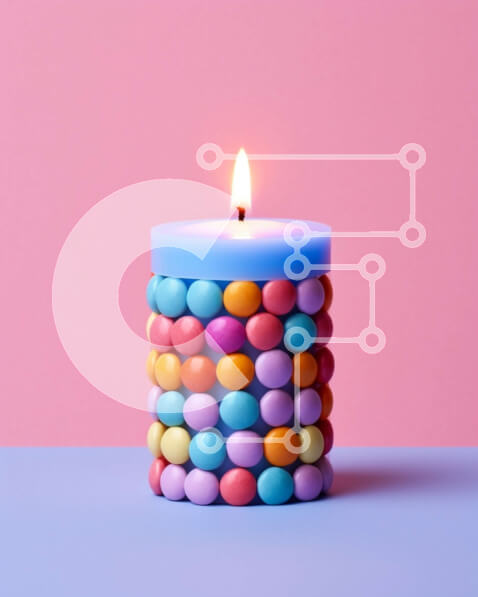 Intra Συλλεκτικό Ξύλινο Παζλ Plywood 4mm – Πολύχρωμη τούρτα γενεθλίων με κεριά σε ροζ επιφάνεια Σε Ξύλινο Κουτί – Διαστάσεις Puzzle: 10×10 cm – 25 κομμάτια