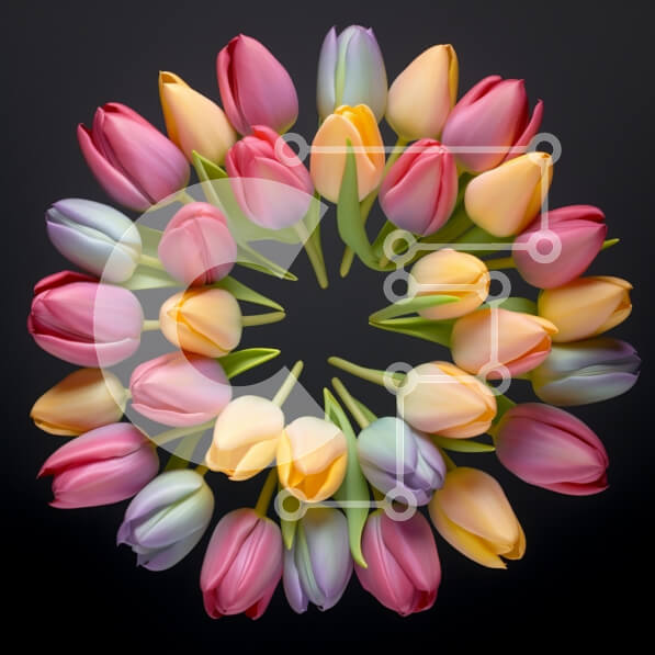Intra Συλλεκτικό Ξύλινο Παζλ Plywood 4mm – Πολύχρωμη διάταξη τουλίπας σε σκούρο φόντο Σε Ξύλινο Κουτί – Διαστάσεις: 10×10 cm – 25 κομμάτια