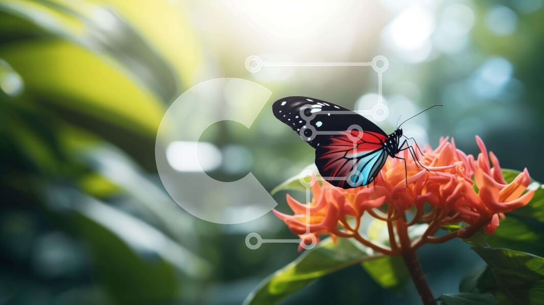 Intra Συλλεκτικό Ξύλινο Παζλ Plywood 4mm – Πολύχρωμη πεταλούδα σε πορτοκαλί λουλούδι σε καταπράσινο τοπίο Σε Ξύλινο Κουτί – Διαστάσεις: 10×10 cm – 25 κομμάτια