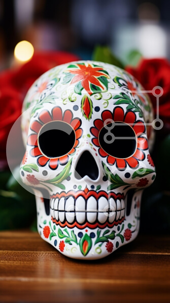 Intra Συλλεκτικό Ξύλινο Παζλ Plywood 4mm – Πολύχρωμο κρανίο ζάχαρης με τριαντάφυλλα Σε Ξύλινο Κουτί – Διαστάσεις: 10×10 cm – 25 κομμάτια