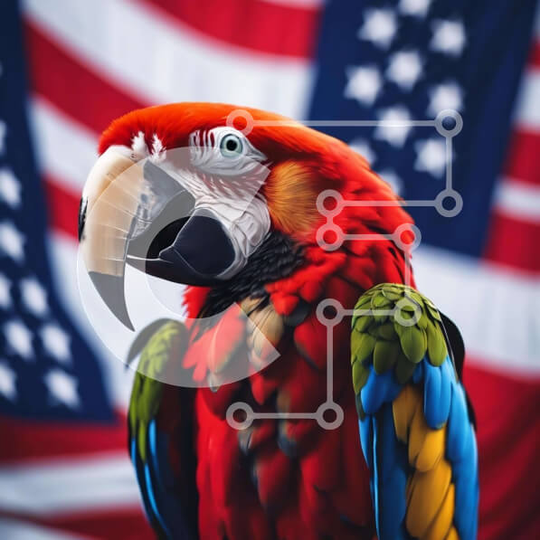 Intra Συλλεκτικό Ξύλινο Παζλ Plywood 4mm – Πολύχρωμος παπαγάλος μπροστά από την αμερικανική σημαία Σε Ξύλινο Κουτί – Διαστάσεις: 10×10 cm – 25 κομμάτια