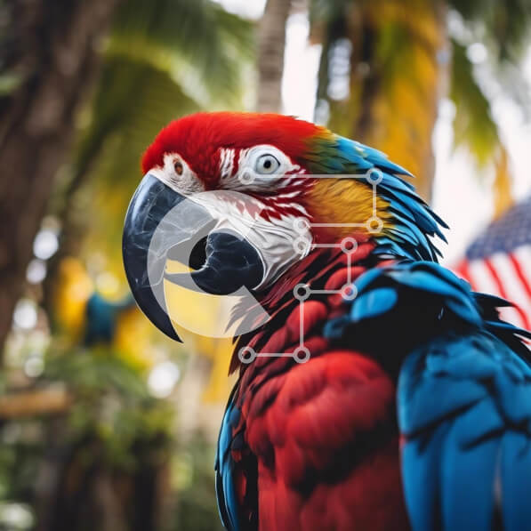 Intra Συλλεκτικό Ξύλινο Παζλ Plywood 4mm – Πολύχρωμος παπαγάλος με φοίνικες και αμερικανική σημαία Σε Ξύλινο Κουτί – Διαστάσεις: 10×10 cm – 25 κομμάτια