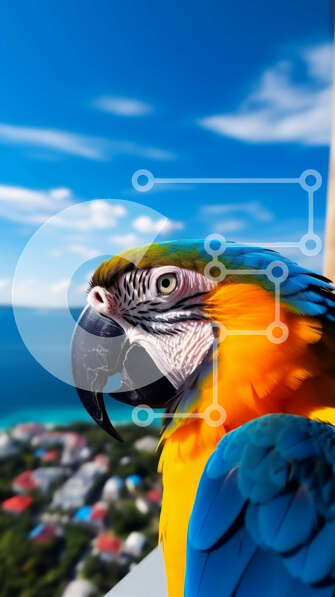 Intra Συλλεκτικό Ξύλινο Παζλ Plywood 4mm – Πολύχρωμος παπαγάλος σκαρφαλωμένος σε πολυκατοικία Σε Ξύλινο Κουτί – Διαστάσεις: 10×10 cm – 25 κομμάτια