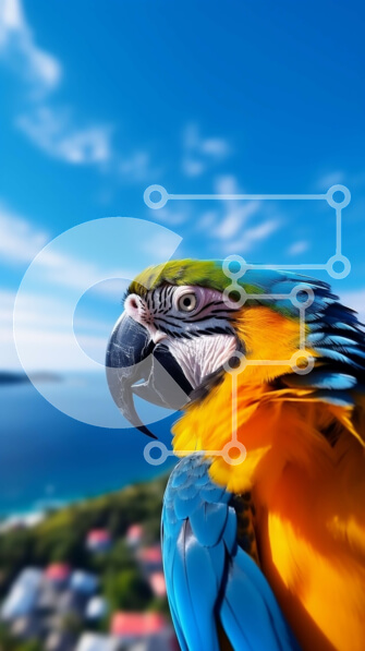 Intra Συλλεκτικό Ξύλινο Παζλ Plywood 4mm – Πολύχρωμος παπαγάλος σκαρφαλωμένος σε ένα δέντρο με θέα στον ωκεανό Σε Ξύλινο Κουτί – Διαστάσεις: 10×10 cm – 25 κομμάτια