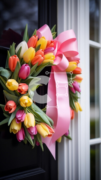 Intra Συλλεκτικό Ξύλινο Παζλ Plywood 4mm – Πολύχρωμο στεφάνι τουλίπας που κρέμεται στην μπροστινή πόρτα Σε Ξύλινο Κουτί – Διαστάσεις Puzzle: 10×10 cm – 25 κομμάτια
