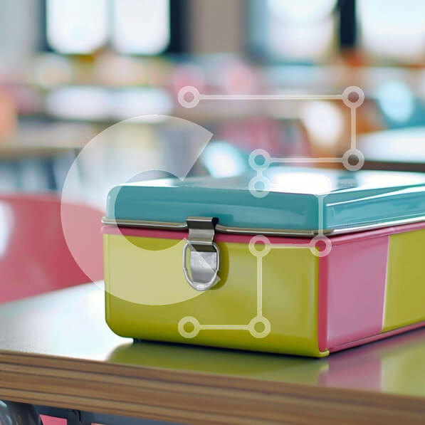 Intra Συλλεκτικό Ξύλινο Παζλ Plywood 4mm – Πολύχρωμο κουτί μεσημεριανού γεύματος σε ξύλινο τραπέζι Σε Ξύλινο Κουτί – Διαστάσεις: 10×10 cm – 25 κομμάτια