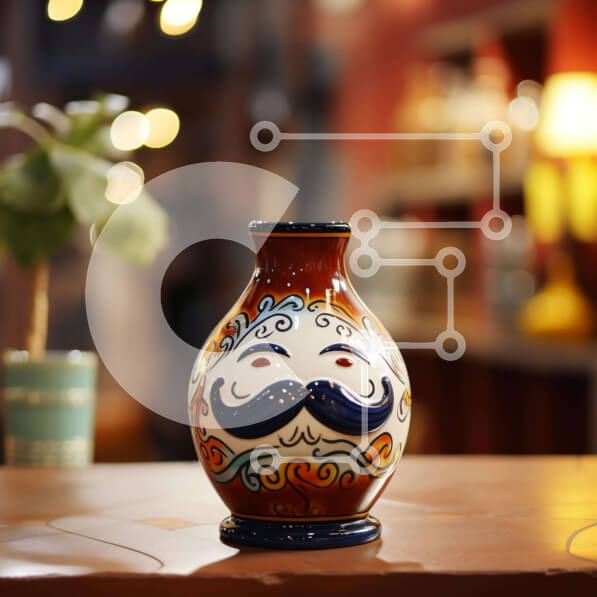 Intra Συλλεκτικό Ξύλινο Παζλ Plywood 4mm – Πολύχρωμο βάζο με περίπλοκο σχέδιο και πρόσωπο με μουστάκι Σε Ξύλινο Κουτί – Διαστάσεις: 10×10 cm – 25 κομμάτια