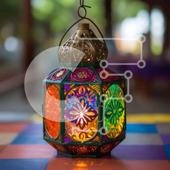 Intra Συλλεκτικό Ξύλινο Παζλ Plywood 4mm – Πολύχρωμο φανάρι σε ένα υπαίθριο τραπέζι Σε Ξύλινο Κουτί – Διαστάσεις Puzzle: 10×10 cm – 25 κομμάτια