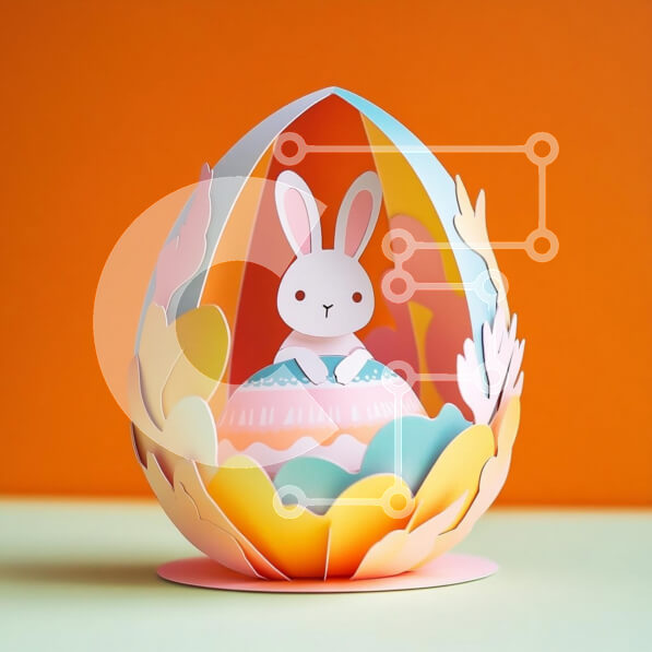 Intra Συλλεκτικό Ξύλινο Παζλ Plywood 4mm – Πολύχρωμο χάρτινο αυγό τέχνης με λαγουδάκι Σε Ξύλινο Κουτί – Διαστάσεις Puzzle: 10×10 cm – 25 κομμάτια