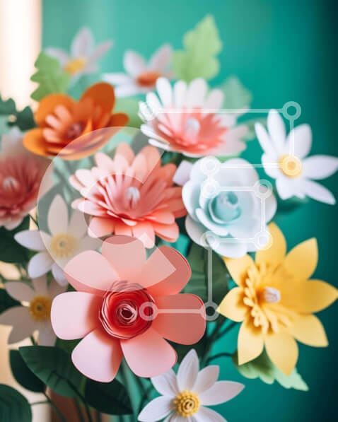 Intra Συλλεκτικό Ξύλινο Παζλ Plywood 4mm – Πολύχρωμο χάρτινο μπουκέτο λουλουδιών σε ξύλινο τραπέζι Σε Ξύλινο Κουτί – Διαστάσεις Puzzle: 10×10 cm – 25 κομμάτια