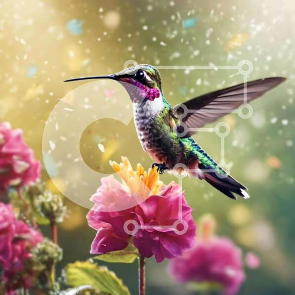 Intra Συλλεκτικό Ξύλινο Παζλ Plywood 4mm – Πολύχρωμο κολίβριο που τρέφεται με ροζ λουλούδια Σε Ξύλινο Κουτί – Διαστάσεις: 10×10 cm – 25 κομμάτια