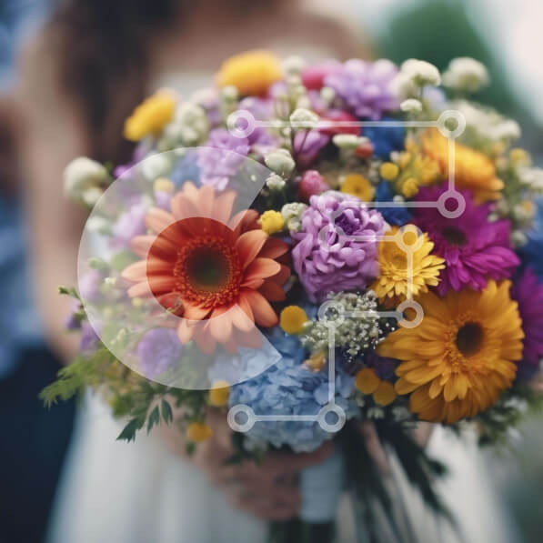 Intra Συλλεκτικό Ξύλινο Παζλ Plywood 4mm – Πολύχρωμο μπουκέτο λουλουδιών που κρατά η νύφη και ο γαμπρός Σε Ξύλινο Κουτί – Διαστάσεις: 10×10 cm – 25 κομμάτια