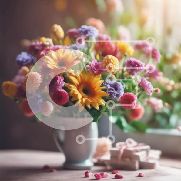 Intra Συλλεκτικό Ξύλινο Παζλ Plywood 4mm – Πολύχρωμο μπουκέτο λουλουδιών και δώρα για ειδική περίσταση Σε Ξύλινο Κουτί – Διαστάσεις: 10×10 cm – 25 κομμάτια
