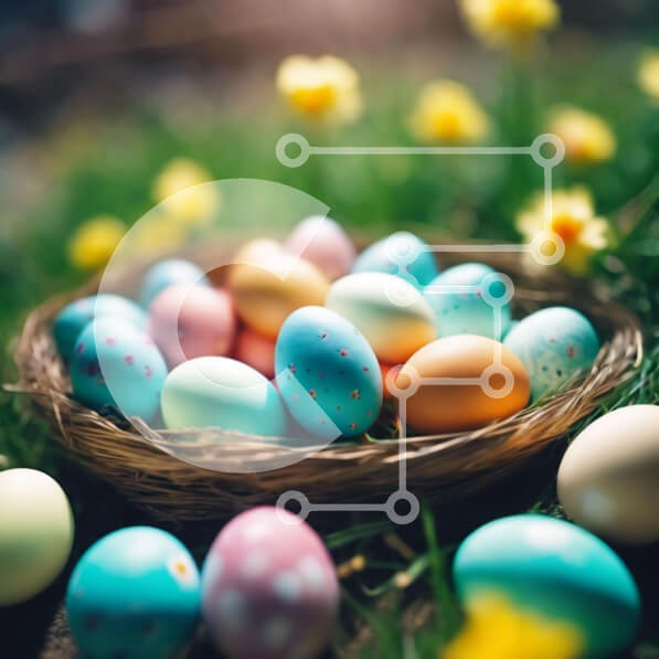 Intra Συλλεκτικό Ξύλινο Παζλ Plywood 4mm – Πολύχρωμο καλάθι με πασχαλινά αυγά σε γρασίδι με λουλούδια Σε Ξύλινο Κουτί – Διαστάσεις: 10×10 cm – 25 κομμάτια