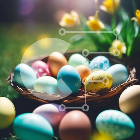 Intra Συλλεκτικό Ξύλινο Παζλ Plywood 4mm – Πολύχρωμο καλάθι με πασχαλινά αυγά με ασφόδελους και τουλίπες Σε Ξύλινο Κουτί – Διαστάσεις: 10×10 cm – 25 κομμάτια