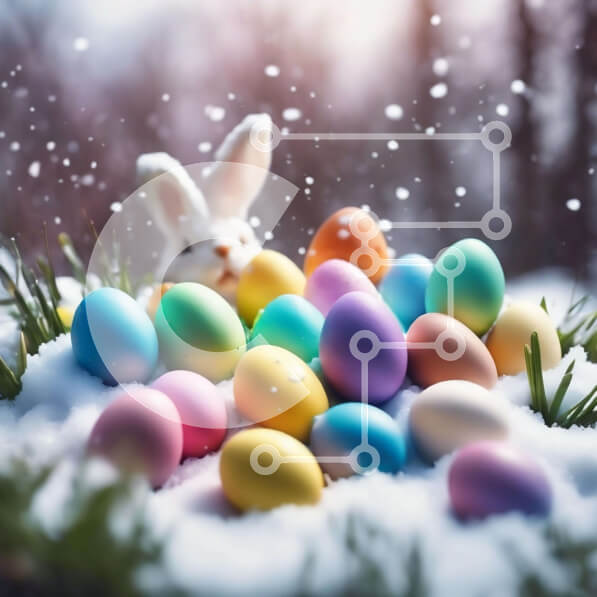 Intra Συλλεκτικό Ξύλινο Παζλ Plywood 4mm – Πολύχρωμο Πασχαλινό λαγουδάκι με τα Πασχαλινά αυγά στο χιόνι Σε Ξύλινο Κουτί – Διαστάσεις: 10×10 cm – 25 κομμάτια