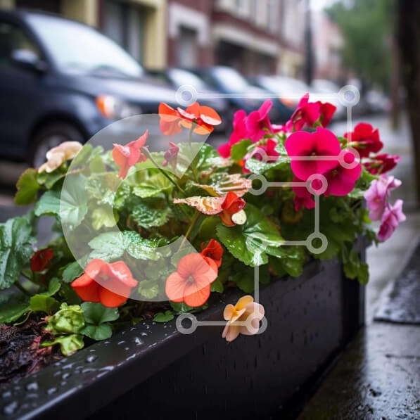 Intra Συλλεκτικό Ξύλινο Παζλ Plywood 4mm – Πολύχρωμο κουτί λουλουδιών στη βροχή με σταθμευμένα αυτοκίνητα Σε Ξύλινο Κουτί – Διαστάσεις: 10×10 cm – 25 κομμάτια