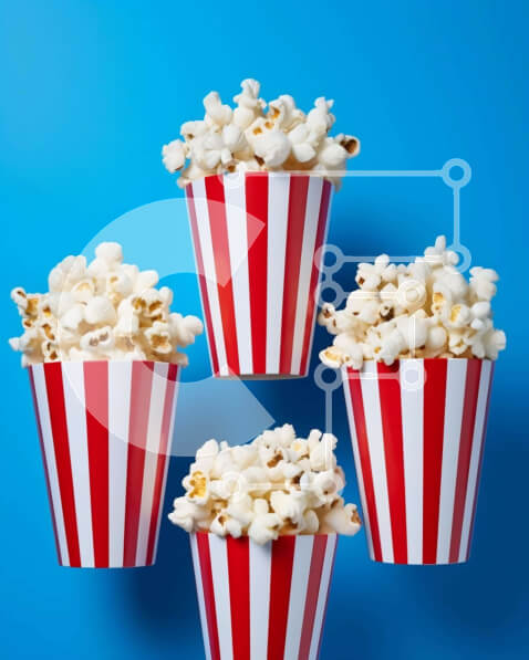 Intra Συλλεκτικό Ξύλινο Παζλ Plywood 4mm – Ποπ κορν σε κόκκινα και λευκά ριγέ φλιτζάνια σε μπλε φόντο Σε Ξύλινο Κουτί – Διαστάσεις: 10×10 cm – 25 κομμάτια