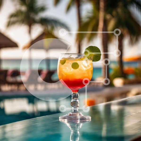 Intra Συλλεκτικό Ξύλινο Παζλ Plywood 4mm – Πορτοκαλί κοκτέιλ δίπλα στην πισίνα Σε Ξύλινο Κουτί – Διαστάσεις Puzzle: 10×10 cm – 25 κομμάτια