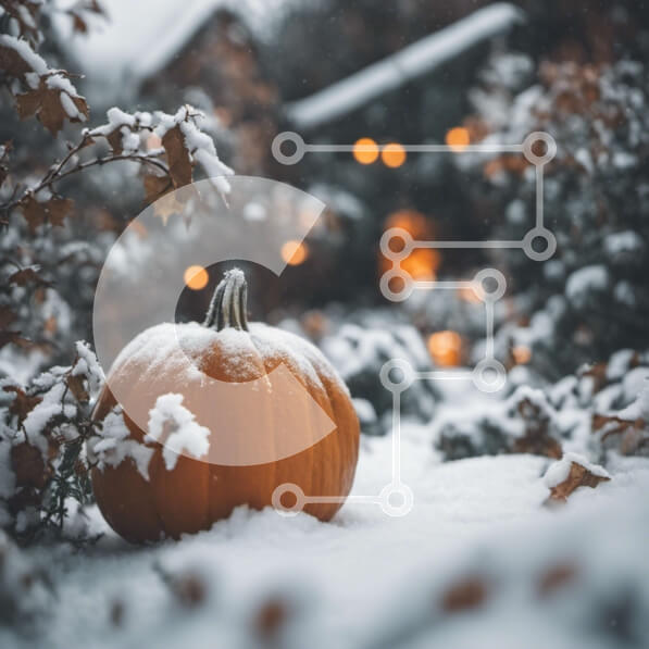 Intra Συλλεκτικό Ξύλινο Παζλ Plywood 4mm – Πορτοκαλί κολοκύθα στο χιόνι με δέντρα και θάμνους Σε Ξύλινο Κουτί – Διαστάσεις Puzzle: 10×10 cm – 25 κομμάτια