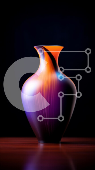 Intra Συλλεκτικό Ξύλινο Παζλ Plywood 4mm – Πορτοκαλί και μωβ βάζο σε σκούρο ξύλινο τραπέζι Σε Ξύλινο Κουτί – Διαστάσεις: 10×10 cm – 25 κομμάτια