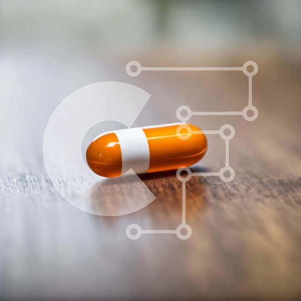 Intra Συλλεκτικό Ξύλινο Παζλ Plywood 4mm – Πορτοκαλί και λευκή ιατρική κάψουλα σε ξύλινο τραπέζι Σε Ξύλινο Κουτί – Διαστάσεις Puzzle: 10×10 cm – 25 κομμάτια
