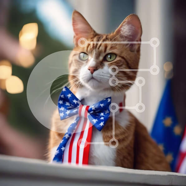Intra Συλλεκτικό Ξύλινο Παζλ Plywood 4mm – Πορτοκαλί και λευκή γάτα με πατριωτικό παπιγιόν στο περβάζι του παραθύρου Σε Ξύλινο Κουτί – Διαστάσεις: 10×10 cm – 25 κομμάτια