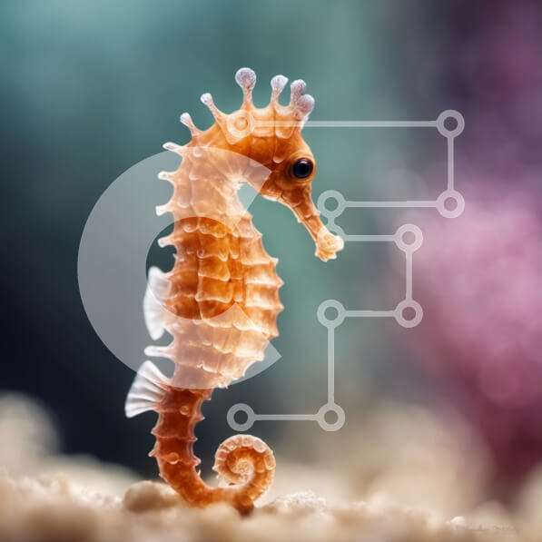 Intra Συλλεκτικό Ξύλινο Παζλ Plywood 4mm – Πορτοκαλί ιππόκαμπος στον αμμώδη πάτωμα του ωκεανού Σε Ξύλινο Κουτί – Διαστάσεις: 10×10 cm – 25 κομμάτια
