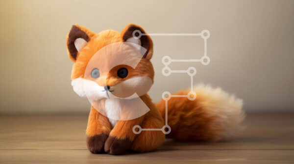Intra Συλλεκτικό Ξύλινο Παζλ Plywood 4mm – Πορτοκαλί γεμιστή αλεπού σε ξύλινο τραπέζι Σε Ξύλινο Κουτί – Διαστάσεις: 10×10 cm – 25 κομμάτια