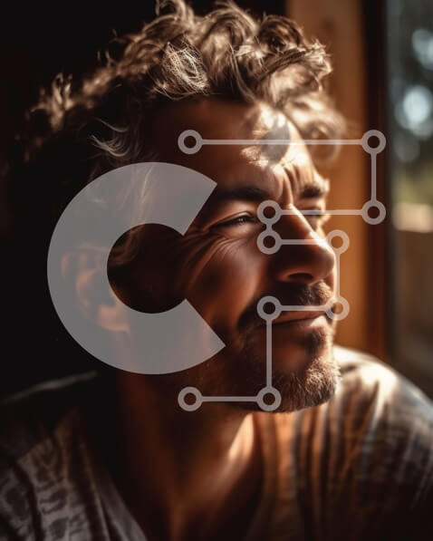 Intra Συλλεκτικό Ξύλινο Παζλ Plywood 4mm – Πορτρέτο ενός στοχαστικού άνδρα με κοντά σγουρά μαλλιά και τσιμπημένη γενειάδα Σε Ξύλινο Κουτί – Διαστάσεις Puzzle: 10×10 cm – 25 κομμάτια