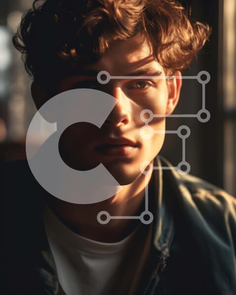 Intra Συλλεκτικό Ξύλινο Παζλ Plywood 4mm – Πορτρέτο ενός νεαρού άνδρα με σγουρά μαλλιά και δερμάτινο μπουφάν Σε Ξύλινο Κουτί – Διαστάσεις Puzzle: 10×10 cm – 25 κομμάτια