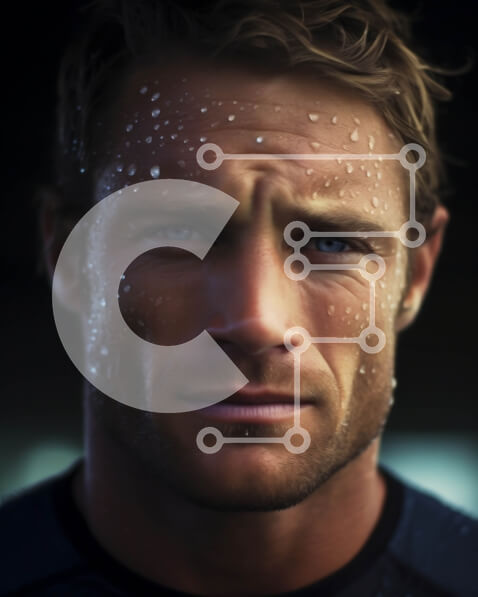 Intra Συλλεκτικό Ξύλινο Παζλ Plywood 4mm – Πορτρέτο ενός άνδρα με σταγονίδια νερού στο πρόσωπό του με μαύρο πουκάμισο και μπλε τζιν Σε Ξύλινο Κουτί – Διαστάσεις Puzzle: 10×10 cm – 25 κομμάτια