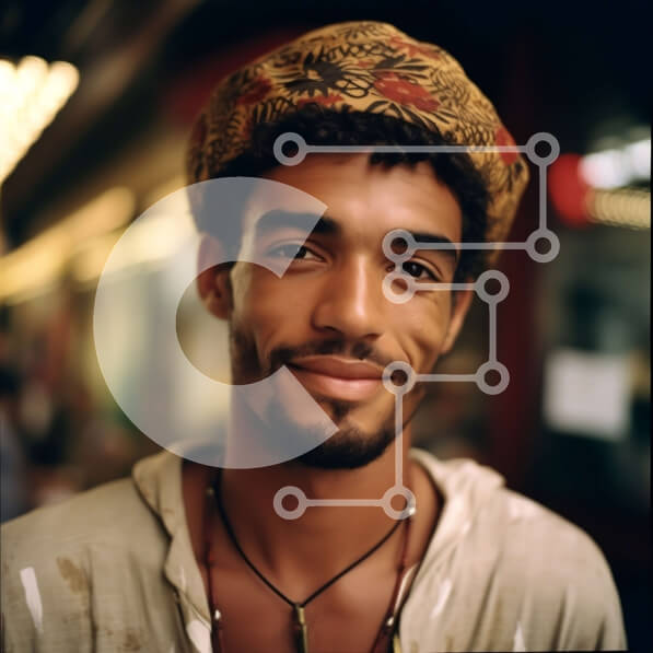 Intra Συλλεκτικό Ξύλινο Παζλ Plywood 4mm – Πορτρέτο ενός ευτυχισμένου άνδρα που φορά πολύχρωμο καπέλο και κολιέ Σε Ξύλινο Κουτί – Διαστάσεις Puzzle: 10×10 cm – 25 κομμάτια