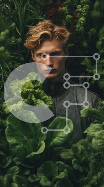 Intra Συλλεκτικό Ξύλινο Παζλ Plywood 4mm – Πορτρέτο ενός σοβαρού νεαρού άνδρα με πράσινο σακάκι ανάμεσα σε φυτά Σε Ξύλινο Κουτί – Διαστάσεις Puzzle: 10×10 cm – 25 κομμάτια