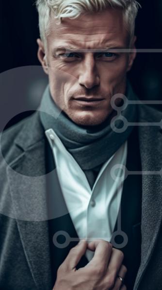 Intra Συλλεκτικό Ξύλινο Παζλ Plywood 4mm – Πορτρέτο ενός σοβαρού άνδρα με γκρι κοστούμι και λευκό πουκάμισο με κοντά ξανθά μαλλιά και μπλε μάτια Σε Ξύλινο Κουτί – Διαστάσεις Puzzle: 10×10 cm – 25 κομμάτια