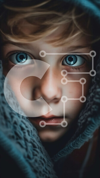Intra Συλλεκτικό Ξύλινο Παζλ Plywood 4mm – Πορτρέτο ενός νεαρού αγοριού που φοράει κουκούλα και μπλε μάτια Σε Ξύλινο Κουτί – Διαστάσεις Puzzle: 10×10 cm – 25 κομμάτια