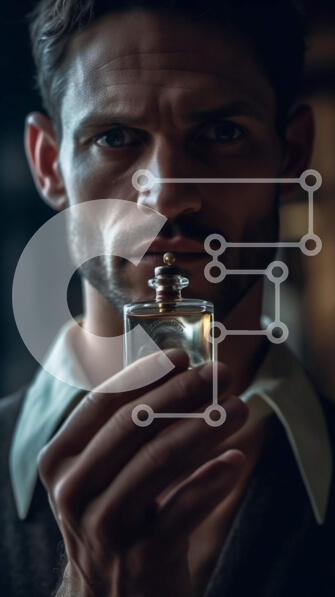 Intra Συλλεκτικό Ξύλινο Παζλ Plywood 4mm – Πορτρέτο ενός άνδρα με ένα μπουκάλι άρωμα Σε Ξύλινο Κουτί – Διαστάσεις Puzzle: 10×10 cm – 25 κομμάτια