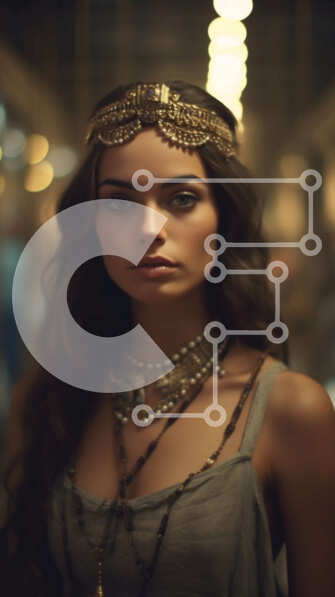 Intra Συλλεκτικό Ξύλινο Παζλ Plywood 4mm – Πορτρέτο μιας σοβαρής γυναίκας με χρυσό κάλυμμα και ρέον φόρεμα Σε Ξύλινο Κουτί – Διαστάσεις Puzzle: 10×10 cm – 25 κομμάτια