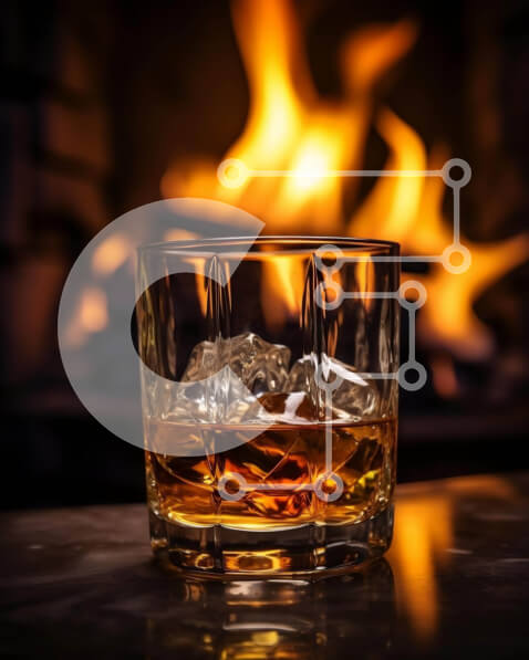 Intra Συλλεκτικό Ξύλινο Παζλ Plywood 4mm – Ποτήρι ουίσκι με πάγο δίπλα στο τζάκι Σε Ξύλινο Κουτί – Διαστάσεις Puzzle: 10×10 cm – 25 κομμάτια