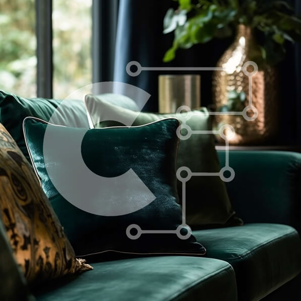Intra Συλλεκτικό Ξύλινο Παζλ Plywood 4mm – Πράσινος καναπές με μαξιλάρια και λουλούδια στο τραπέζι σε υπέροχο εσωτερικό Σε Ξύλινο Κουτί – Διαστάσεις Puzzle: 10×10 cm – 25 κομμάτια