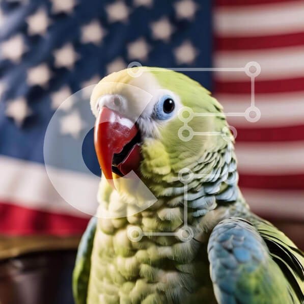 Intra Συλλεκτικό Ξύλινο Παζλ Plywood 4mm – Πράσινος παπαγάλος μπροστά από την αμερικανική σημαία Σε Ξύλινο Κουτί – Διαστάσεις: 10×10 cm – 25 κομμάτια