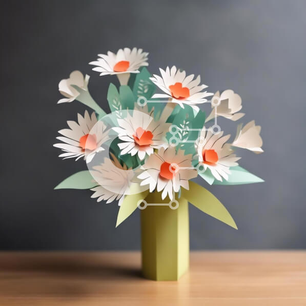 Intra Συλλεκτικό Ξύλινο Παζλ Plywood 4mm – Πράσινο βάζο με λευκά χάρτινα λουλούδια Σε Ξύλινο Κουτί – Διαστάσεις: 10×10 cm – 25 κομμάτια
