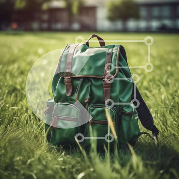 Intra Συλλεκτικό Ξύλινο Παζλ Plywood 4mm – Πράσινο σακίδιο πλάτης στο γρασίδι με καφέ δερμάτινα λουριά Σε Ξύλινο Κουτί – Διαστάσεις: 10×10 cm – 25 κομμάτια