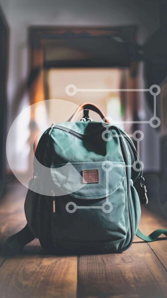 Intra Συλλεκτικό Ξύλινο Παζλ Plywood 4mm – Πράσινο σακίδιο πλάτης σε ξύλινο πάτωμα Σε Ξύλινο Κουτί – Διαστάσεις: 10×10 cm – 25 κομμάτια