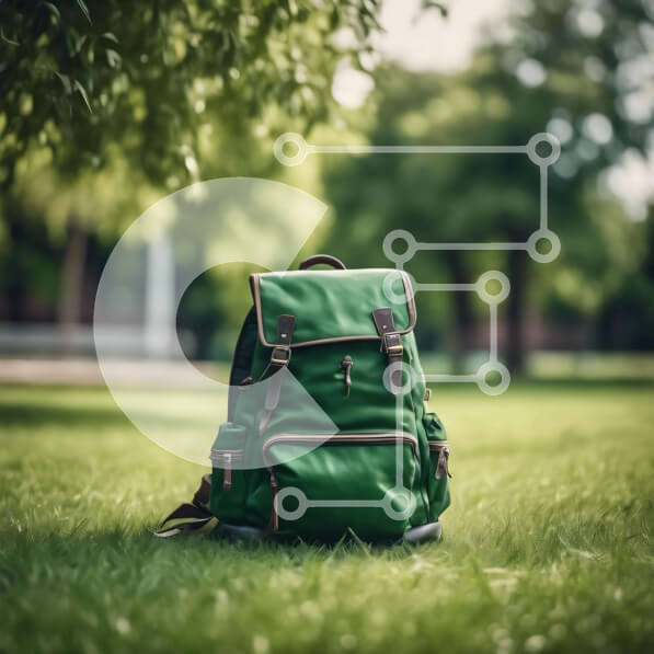 Intra Συλλεκτικό Ξύλινο Παζλ Plywood 4mm – Πράσινο σακίδιο πλάτης στο γρασίδι μπροστά από τα δέντρα Σε Ξύλινο Κουτί – Διαστάσεις: 10×10 cm – 25 κομμάτια