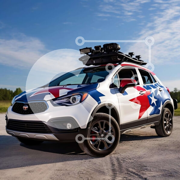 Intra Συλλεκτικό Ξύλινο Παζλ Plywood 4mm – Προσαρμοσμένο κόκκινο, λευκό και μπλε αυτοκίνητο με αμερικανική σημαία Σε Ξύλινο Κουτί – Διαστάσεις Puzzle: 10×10 cm – 25 κομμάτια