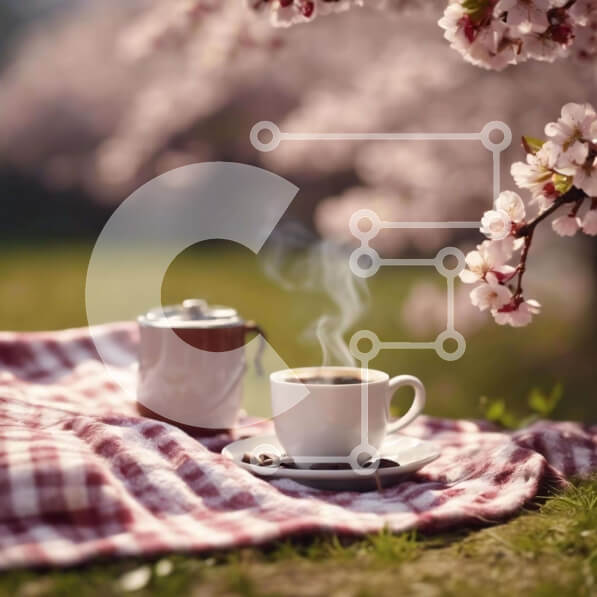 Intra Συλλεκτικό Ξύλινο Παζλ Plywood 4mm – Πρωινός καφές κάτω από τις ανθισμένες κερασιές Σε Ξύλινο Κουτί – Διαστάσεις Puzzle: 10×10 cm – 25 κομμάτια