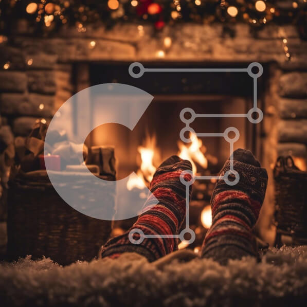 Intra Συλλεκτικό Ξύλινο Παζλ Plywood 4mm – Πόδια μπροστά από χριστουγεννιάτικο τζάκι με φωτάκια και στολίδια Σε Ξύλινο Κουτί – Διαστάσεις: 10×10 cm – 25 κομμάτια