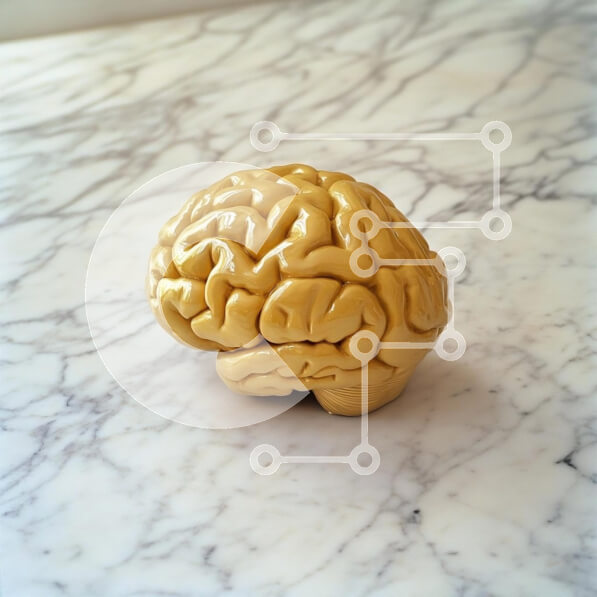 Intra Συλλεκτικό Ξύλινο Παζλ Plywood 4mm – Ρεαλιστικό κίτρινο γλυπτό εγκεφάλου σε μαρμάρινη επιφάνεια Σε Ξύλινο Κουτί – Διαστάσεις: 10×10 cm – 25 κομμάτια