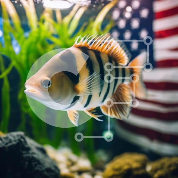 Intra Συλλεκτικό Ξύλινο Παζλ Plywood 4mm – Ριγέ ψάρια στο ενυδρείο με αμερικανική σημαία Σε Ξύλινο Κουτί – Διαστάσεις: 10×10 cm – 25 κομμάτια